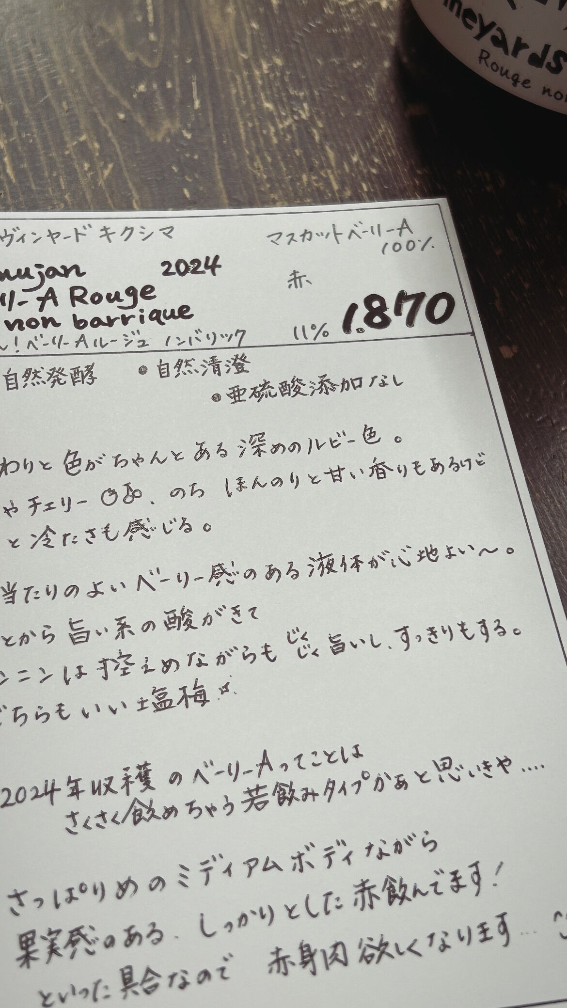 2024年収穫のベーリーAってことは、サクサク飲めちゃう若飲みタイプかと思いきや...