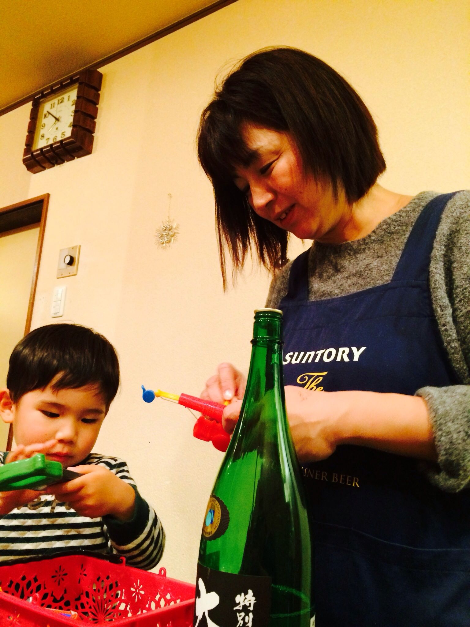 じぃちゃんが大切に乾杯用にとお酒を冷蔵庫で寝かせておりました。